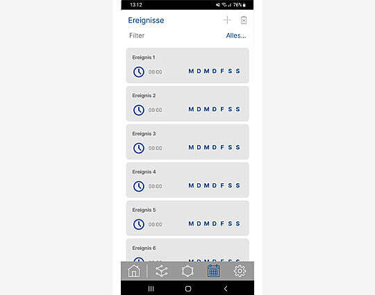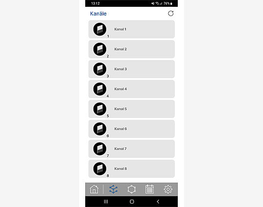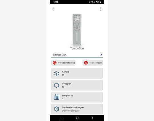 Na ekranie głównym, który pokazuje urządzenie obsługujące technologię Son NFC (w tym przypadku TempoSon-868), można przejść do ustawień kanałów, grup i zdarzeń.